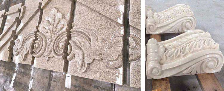 家庭裝修:廣泛應用于電視背景墻、玄關、屏風、別墅外墻浮雕、藝術雕塑、圍欄等石材構件雕刻;例如:洋花、角花、墻心拼花、弧形線條、大型浮雕背景墻、迎門磚雕、欄板浮雕、柱頭等。