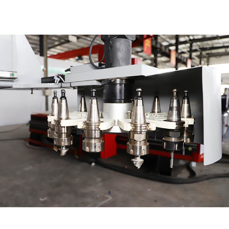 高速高精度雕銑數控設備,配置斗笠式伺服刀庫,刀庫容量可選配8/12/16/18把刀具,伺服電機配置,換刀效率更高。