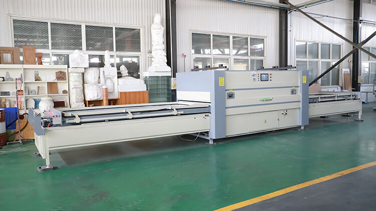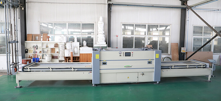 該設備可以快速貼覆PVC木紋裝飾膜,無論平面,曲面,結構造型復雜的異型工件均可一次性完成表 面/側面的貼合,貼膜后的產品飾面高雅,圖案豐富,表面無色差,光潔度高,防水防潮,粘結牢固。即 消除了油漆中的有害物質對人體和環境的污染,也節約了油漆成本和人工費。更縮短的生產工期,使產品真正成為高檔實惠,健康,舒適的新型環保的裝飾材料。在裝硅膠板后用于熱轉印膜和單面木皮的貼覆工作,用于各種板式家具上。
